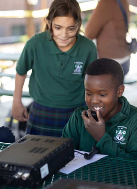 “CQ, CQ, CQ, school roundup. This is kilo charlie zero lima kilo victor.” A St. Joseph School student released the button on the side of the ham radio’s microphone. Within seconds came a response through the radio’s crackle. “This is kilo foxtrot three delta juliet,” the man on the other end of the receiver called out. Andrea Nunziante took over the microphone, introducing his new contact — Ronald Reiff (KF3DJ), a retired radio announcer from Columbus, Pennsylvania — to students at St. Joseph in Cottleville, who eagerly watched the amateur radio demonstration. On an October afternoon, students took turns contacting other ham radio operators across the country as part of the American Radio Relay League’s School Club Roundup, a twice-yearly event for ham radio clubs at elementary, junior high, high schools and colleges that gives them experience exchanging information with other amateur radio stations. Nunziante, St. Joseph’s technology director and an amateur radio operator (KCØLKV) for more than 25 years, introduced students to ham radio this school year to show how the technology can connect people in new ways. Lessons in math, science and language arts have also emerged from their discussions. “It is cross-discipline because you can use it for geography, you can use it for language, you can use it for science,” he said. “So there are several ways that the teacher can integrate that into the curriculum. The overall goal is to get them interested in a way of communication that it’s different than cellphone and computer.” Students have learned basic radio concepts, including frequencies and propagation (the way some radio signals travel from one amateur radio station to another), and operating etiquette when contacting other hams. Connecting with other amateur radio operators depends largely on solar and weather conditions, Nunziante explained to about two dozen students who stayed after school to participate in the roundup event. The occurrence of a solar flare — a burst of radiation from the sun’s surface caused by the release of built-up magnetic energy — can interfere with high-frequency signals, causing a sudden loss in communication. “When there is a big magnetic flare and you turn on the radio, it’s just quiet — really quiet,” he said. Seventh grader Joey Risley made contact with a radio operator at Red River Gorge, Kentucky, who was participating in Parks on the Air, a program that promotes communications from national and state parks. “It’s really cool that you can talk to people, it’s just really fun,” said Joey, who plans on exploring more with ham radio as part of a Scouting merit badge on radio. “It’s a new perspective, just like talking on the phone. We do that every day. But this is a bit more like, you don’t know who you’re going to talk to next or where they’re from. So I just find it really exciting.” Throughout the afternoon, students made contact with ham radio stations in other states, including Oklahoma, South Dakota and Texas, as well as one in Canada. Nunziante explained that proper etiquette involves listening before transmitting, avoiding monopolizing a frequency and being respectful of other operators. CQ (pronounced “seek you”), for example, is a general call used by an operator to invite other stations to make contact. “Is the frequency open?” Nunziante called into the microphone. Turning to students, he said, “Let me ask you a question: Do you know why I did that? I’ll show you,” as he walked over and wedged himself in between two students sitting on a bench. “Was that good? No. But if I come over and say, ‘May I come over and join you in this seat?’ That’s polite, right?” Students made contact with Andrew Piper (KI5AIE), an 80-year-old operator from Calera, Oklahoma. Fourth grader Marianna Dwyer asked him what he likes most about ham radio. Piper told her that he enjoys taking apart radios and putting them back together and has been a ham radio enthusiast since he was 10 years old. Nunziante hopes the school eventually will form a ham radio club and apply for a club station license. But for now, he hopes that students will grow in their enthusiasm for ham radio. People have told Nunziante that ham radio generally attracts older enthusiasts, but he said it’s really a hobby for any age and is easy to learn. “This is something that the kids can actually do,” he said. “You start with the tech class (entry-level license), and then you can go out from there.” What is Amateur Radio?It is a form of communication, a hobby, a community service and a vital service in the event of an emergency. It could be a teacher in Nova Scotia making friends over the radio with another Radio Amateur in New Zealand; an Alberta teenager using her computer to upload a chess move through her radio which is retrieved by a fellow chess fan in Florida via an Amateur Radio space satellite; or a truck driver in Manitoba contacting Radio Amateurs in a hundred countries during a single weekend contest. The appeal of Amateur Radio is the ability to communicate across the country, around the globe, and even with astronauts on space missions. Many Radio Amateurs build and experiment with radio. Do you?